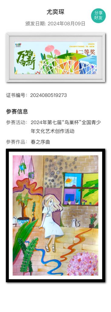 参赛活动:2024年第七届“鸟巢杯”全国青少年文化艺术创作活动