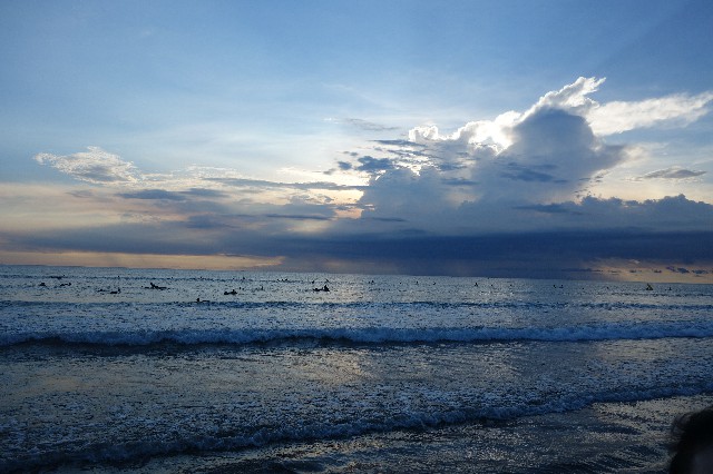 逛完超市女同胞们做个完美的SPA放松身心,男同胞们随意的周边闲逛,熟悉一下当地人的生活,买了两个超便宜的椰子边喝边走,吃完午饭悠闲的走到巴厘岛最热闹的库塔海滩欣赏一下余辉中的冲浪者,晚上超市买了各种不知名的水果尝了个遍
