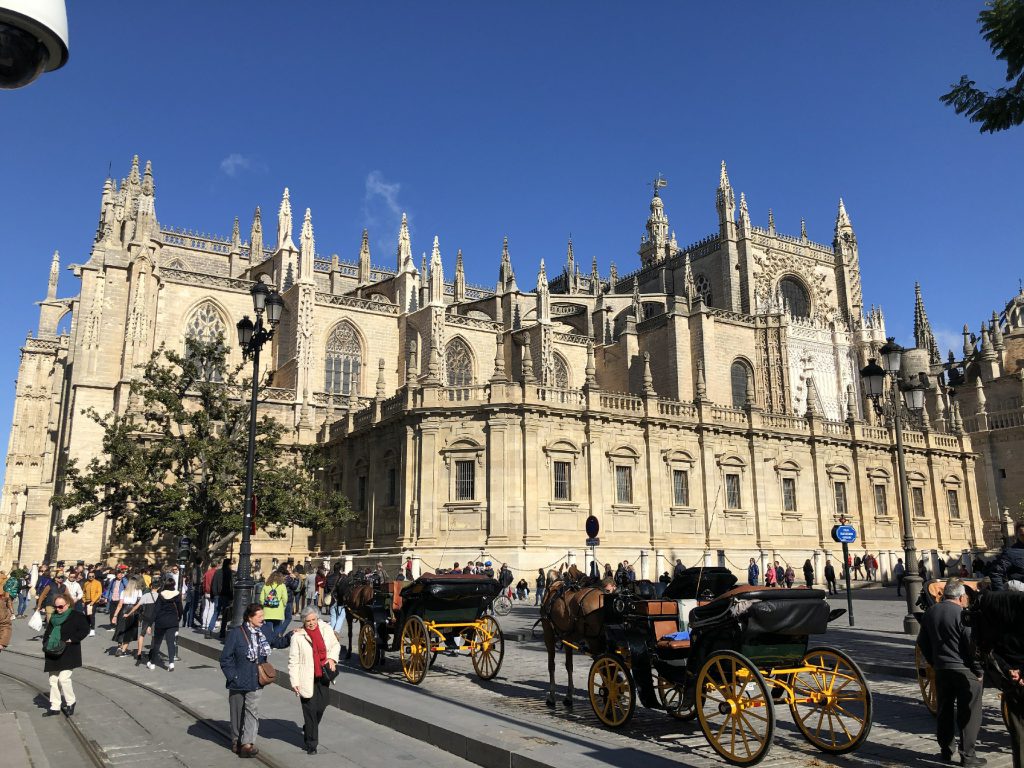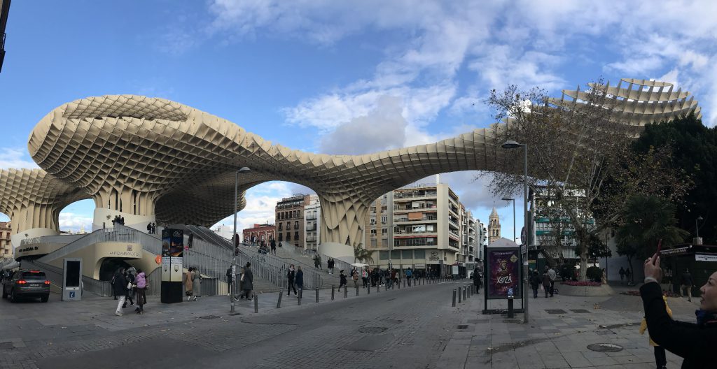 1月19日塞维利亚一日游,塞维利亚著名景点全集中在圣十字区。从塞维利亚大学到塞维利亚王宫,西班牙广场,黄金塔,都市阳伞,沿途经塞维利亚大教堂…走走歇歇直至夜幕降临,参观了弗拉明戈博物馆。