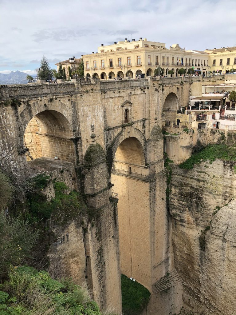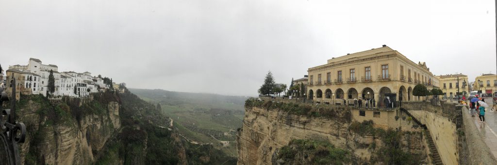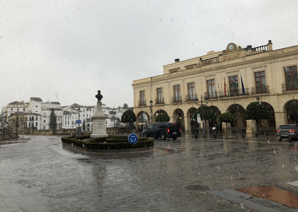 1月20日早餐后驱车200公里到达云端城市—龙达小镇。在龙达见到了2020年第一场大雪。迎着雨雪走到龙达新桥,龙达是西班牙安达利亚的一座小城,伫立在海拔上百米的悬崖之上,给人一种天空之城的壮美之感。它以新桥为纽带,将两个城区巧妙地连接在一起,展现出古老与现代的完美融合。老城区高耸在悬崖之上,仿佛与天空接壤,其壮观的景色让人心潮澎湃。