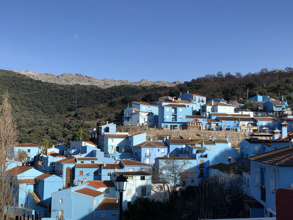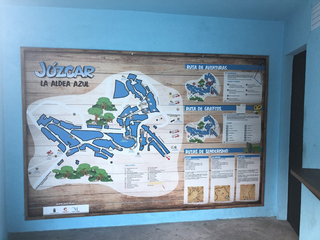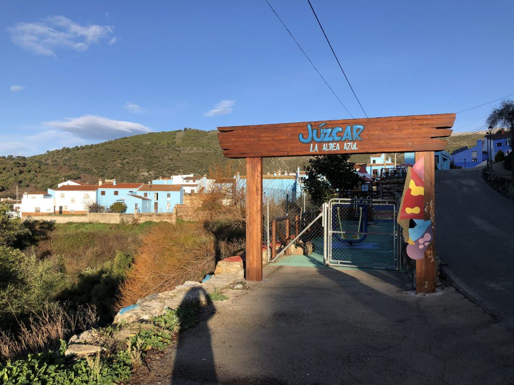1月21日带着小朋友们一起去蓝精灵小镇,小镇里到处都是涂鸭,人迹罕见,蓝天白云下蓝蓝的小村子真的像步入漫画中一样。胡斯卡尔小镇这里曾经是全世界唯一一个被官方授权的蓝精灵村庄,我们驱车千回百转的来到了隐藏于群山之中的蓝精灵小镇。走进小镇,看到墙上画着、窗前摆着很多蓝精灵故事中的人物。首先看到了墙上惟妙惟肖曾经我很讨厌的格格巫,然后再满城寻找着蓝爸爸、蓝妹妹、笨笨、阿滋猫等,仿佛在一片蓝色的童话世界里徜徉。回程路过新桥再留个影纪念一下。