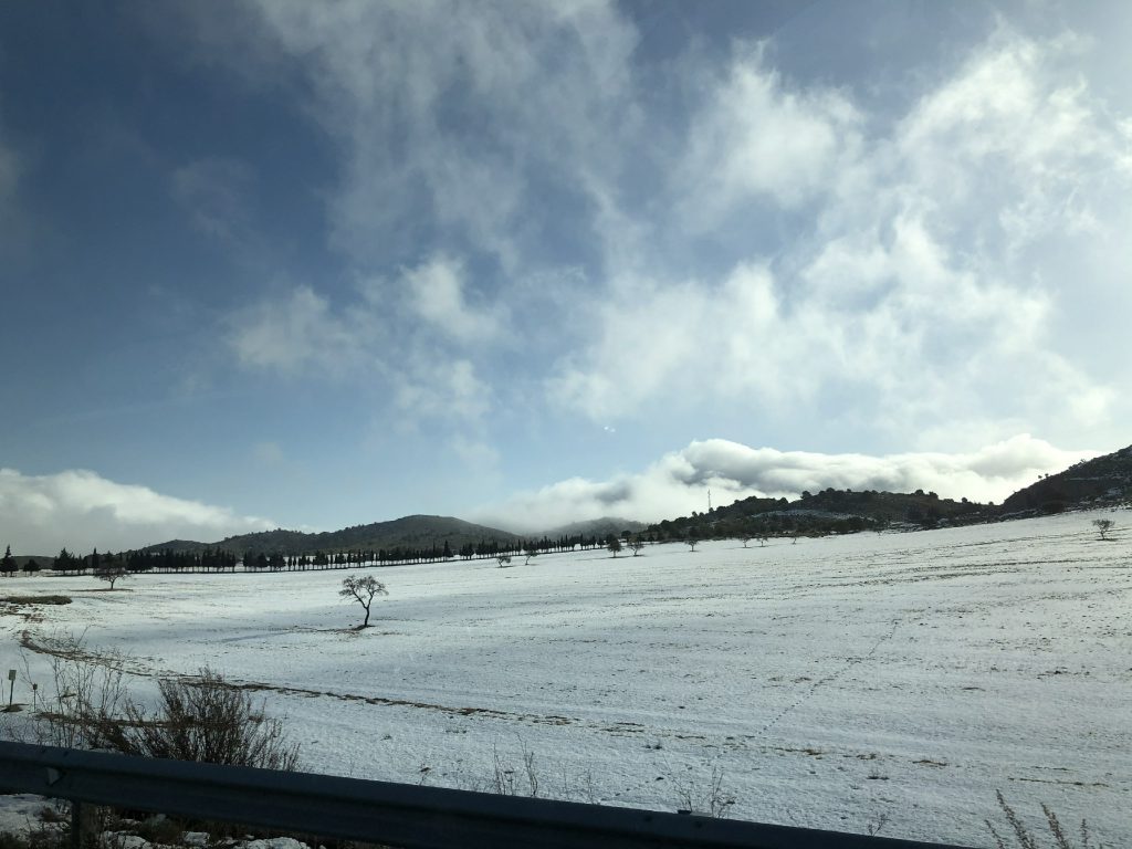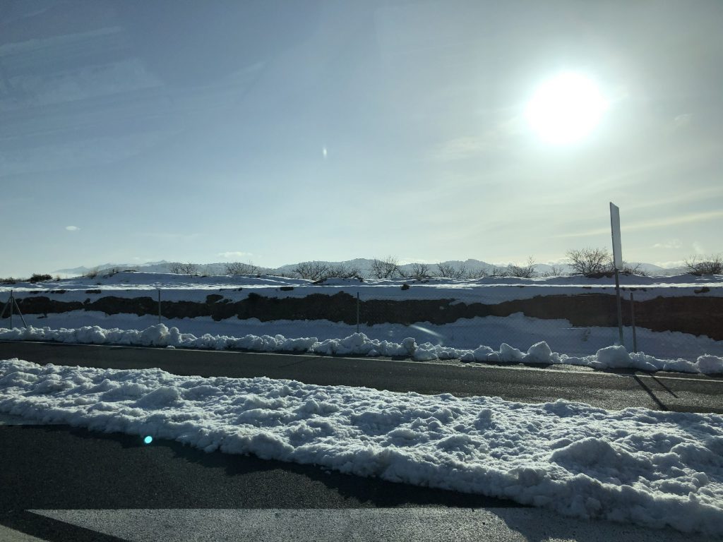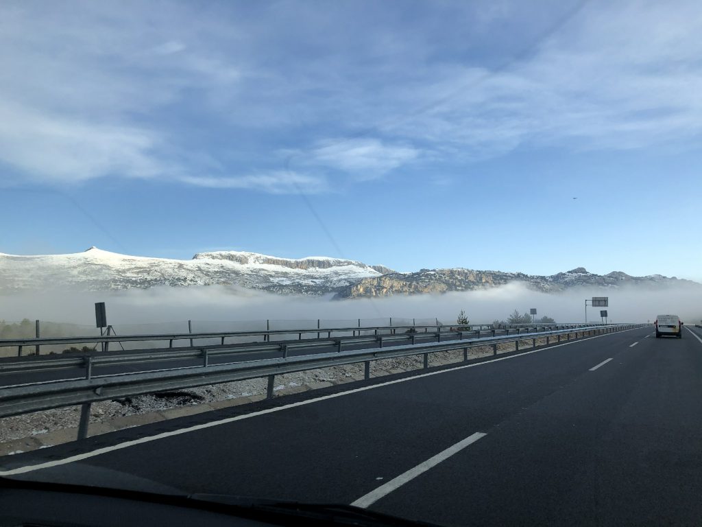1月23日从格拉纳达驱车前往阿利坎特。一路经过冰雪世界-阳光明媚-绵绵春雨-风和日丽,半日中领略四季更替,是不是很神奇?粉红湖令人很失望,不知何谓粉红。傍晚闲逛了一下阿利坎特大学,绿草如茵,钟灵毓秀……民宿就坐落在海边,交通很方便,体验了一次有轨电车,晚餐姐姐请我们吃当地华人开的自助餐,非常超值。