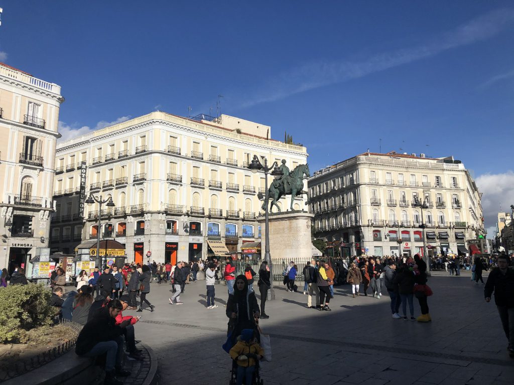 2020年1月17日当地时间中午1点到达马德里机场,我们提前预定了接机服务,接机的是一位国人,路上和我们聊天,稍微介绍了一下当地的情况。我们入住位于市中心的酒店,办好入住我们按照计划打卡太阳门广场,马德里王宫,晚上参观普拉多国家博物馆(17点后免费但需要排队进入),街上到处都是街头艺人,西班牙的甜点都非常甜,晚上我们吃了正宗的西班牙墨鱼海鲜饭,就是上海人说的“隔生饭”,失望。