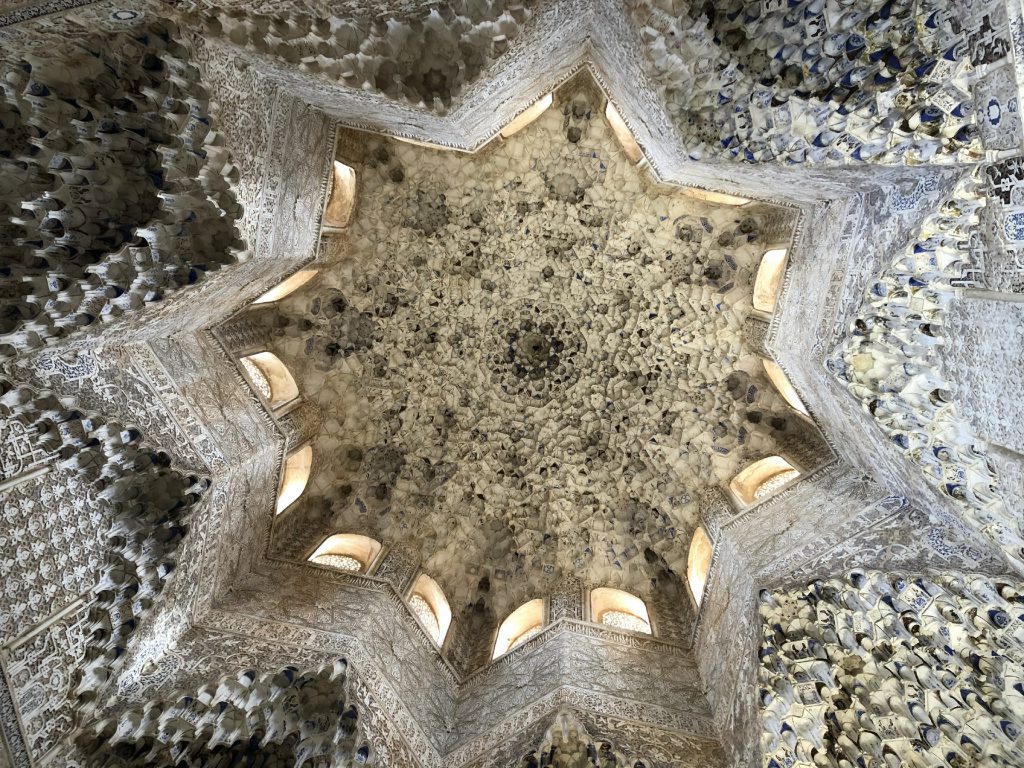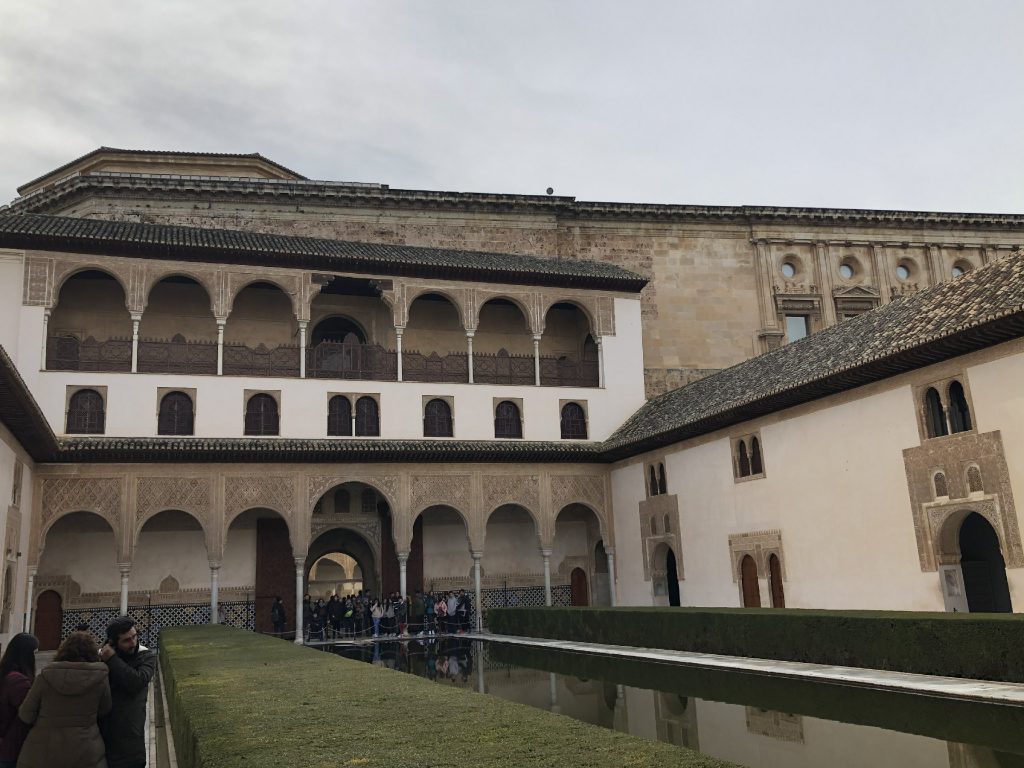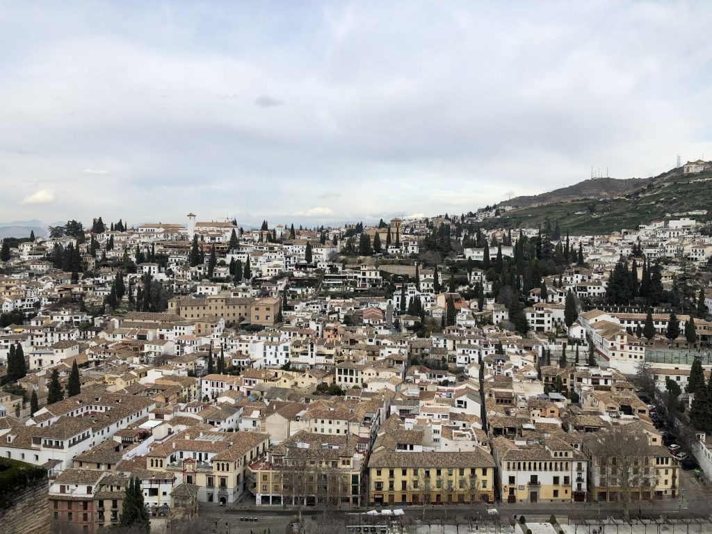 1月22日龙达出发开车190公里中午12点到达格拉纳达,参观阿尔罕布拉宫—世界文化遗产,西班牙著名的故宫。西班牙古迹的精华,阿拉伯式宫殿庭院艺术的鼎盛之作,伊斯兰艺术在西班牙的瑰宝,有着“宫殿之城”和“世界奇迹”之称。格拉纳达街道很狭窄,寻找停车场是考验车技的时候,错过了午饭时间,好容易找到一家午休时还营业的小餐厅,品尝到美味的炖牛尾。