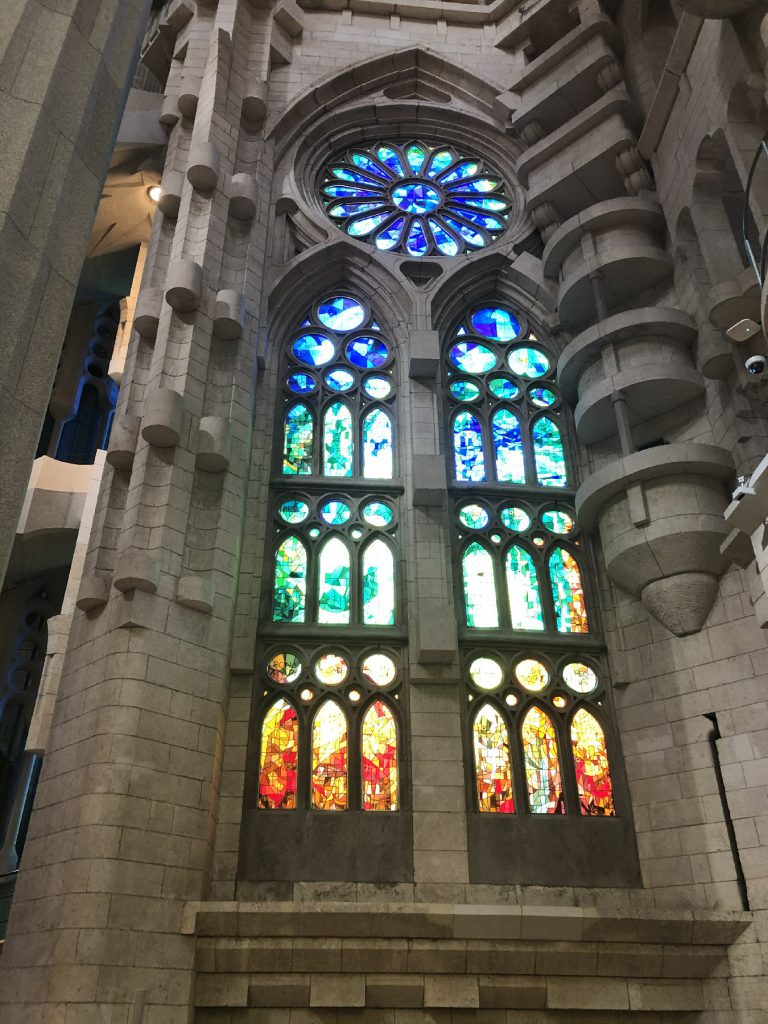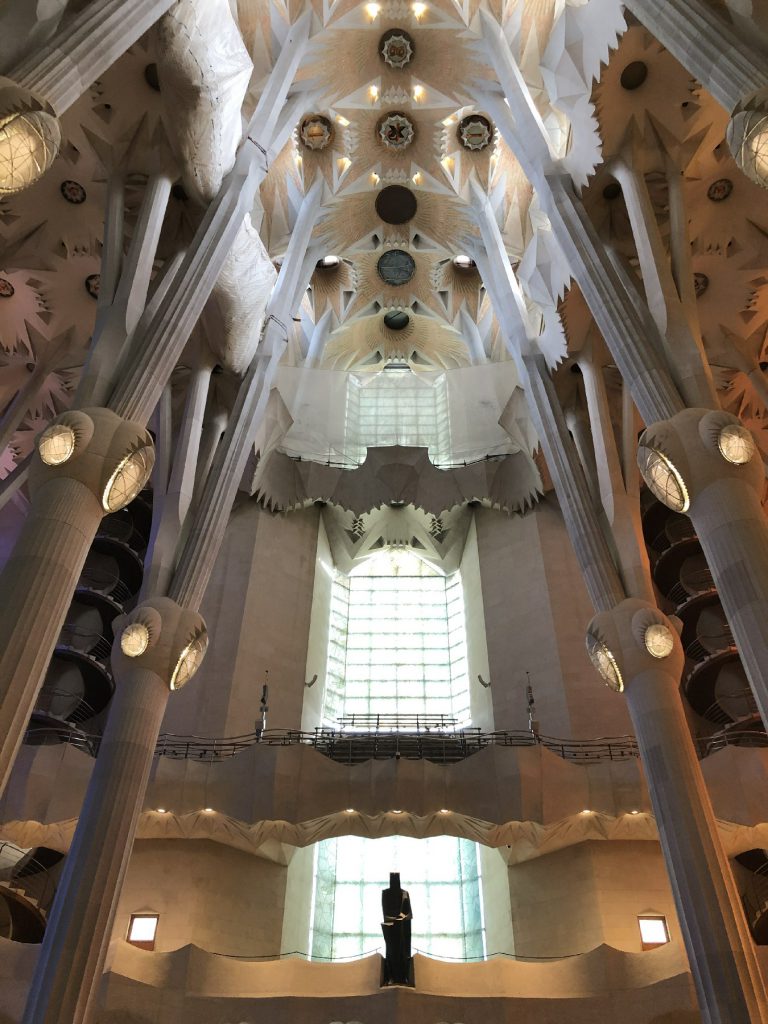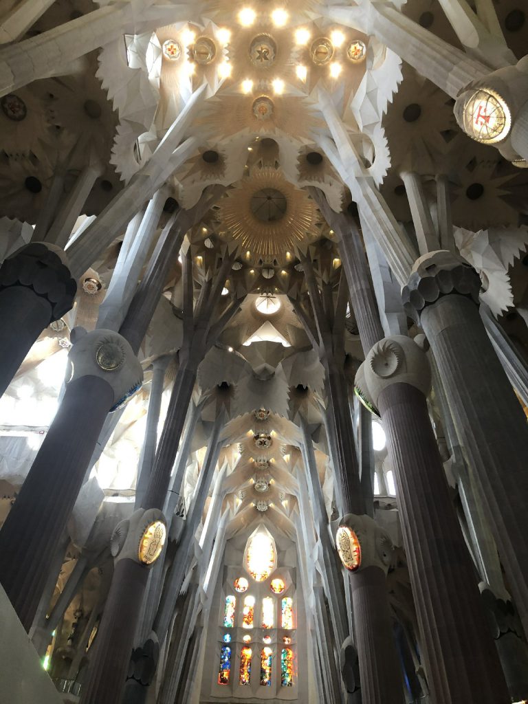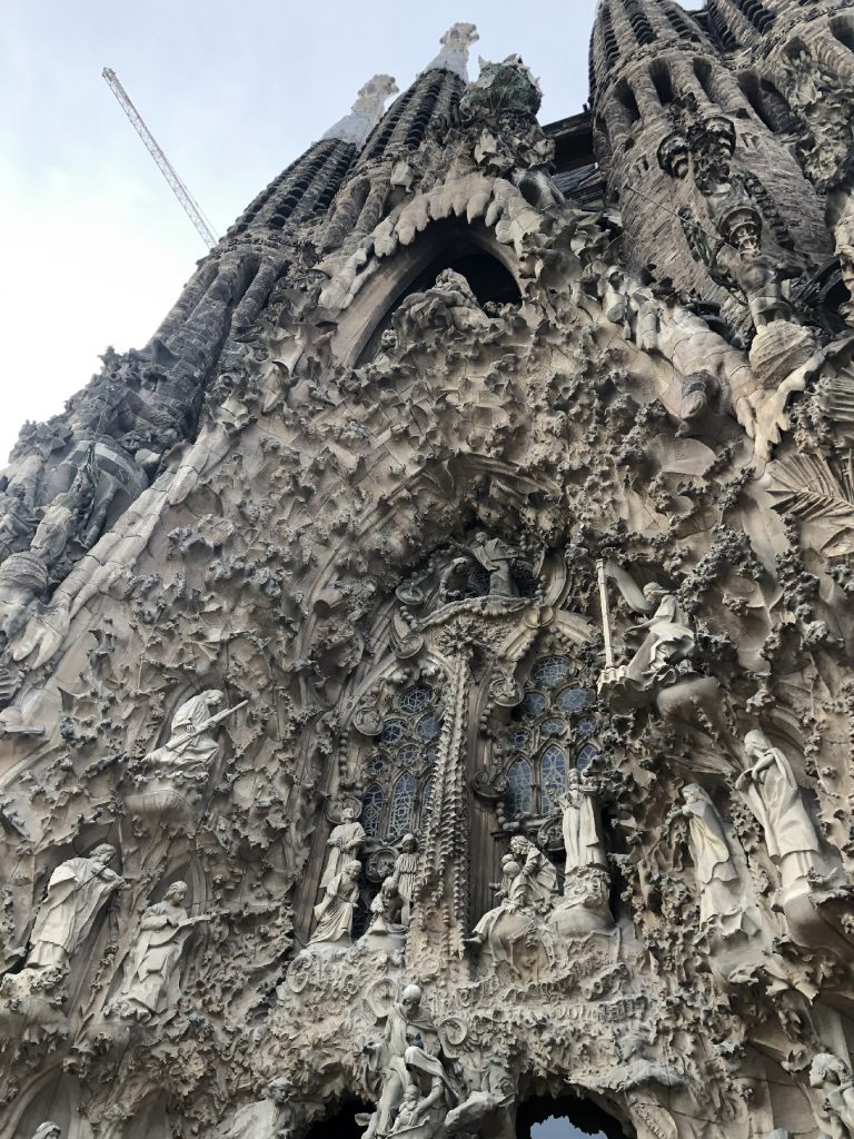 1月28日圣家堂是一所绝对震撼处处精美的教堂,登顶可以看到整个城市。也有人说它是“石头构筑的梦魇”,是西班牙久负盛名的观光地和地标性建筑,预计2026年高迪逝世100周年可以竣工。高迪的生命之作,岩石砌起的参天大树,七彩玻璃,五彩斑斓,绚烂夺目,无比震撼。整个圣家堂笼罩在石质丛林的孕育之中,象征隐喻的复杂结构,蜿蜒流转的韵律空间,璀璨斑斓的五光十色。弥漫着诗意的氛围,流动着万物的生机、自然的光辉。按照高迪的设想,神圣家族教堂应该包括东、西、南侧三个浮雕立面。分别以隐喻的手法,象征耶稣生命的三个阶段:诞生、受难与复活。[直线属于人类,曲线归于上帝]