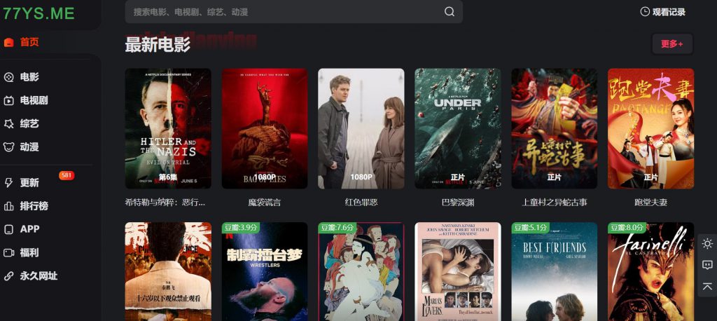电影网站 77影视 作者菜菜 2024 年 6 月 7 日2025 年 5 月 20 日 https://www.77ys.co/ 77影视是一个提供免费在线观看电影和电视剧的网站,涵盖了各种类型和地区的影视作品。你可以在这里找到最新最热的电影和剧集,如《庆余年》《新生》《与凤行》 …