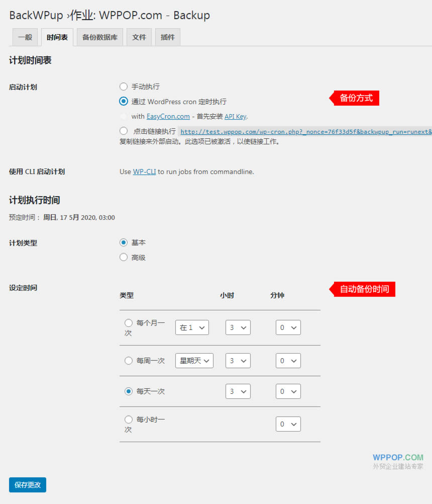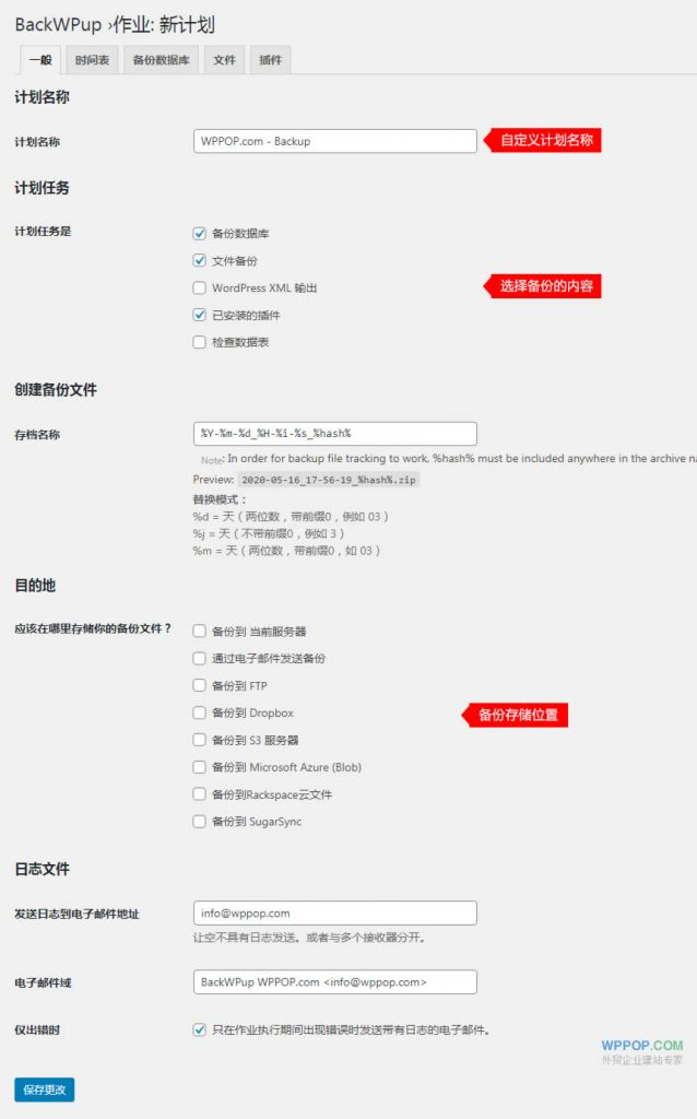 • 计划名称:为每一个备份计划创建一个容易识别的名称,比如:WPPOP.com – Backup